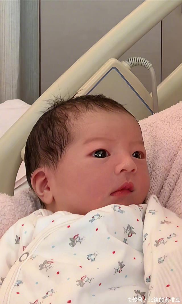 郭富城还附上了一张三胎女儿的照片,小宝宝拥有一袭乌黑浓密的头发,眼睛很大,鼻梁笔挺,这模样简直和方媛一模一样。